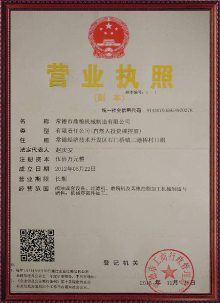 企業(yè)堅持“質(zhì)量、口碑就是我們的生命”的原則,嚴(yán)格執(zhí)行質(zhì)量標(biāo)準(zhǔn)檢驗體系。生產(chǎn)的"鼎糧"牌系列產(chǎn)品,產(chǎn)品質(zhì)量優(yōu),性價比高,深受廣大新老客戶的青睞,通過了各級部門的鑒定認(rèn)可,立式、臥式液壓榨油機均榮獲農(nóng)機推廣證。